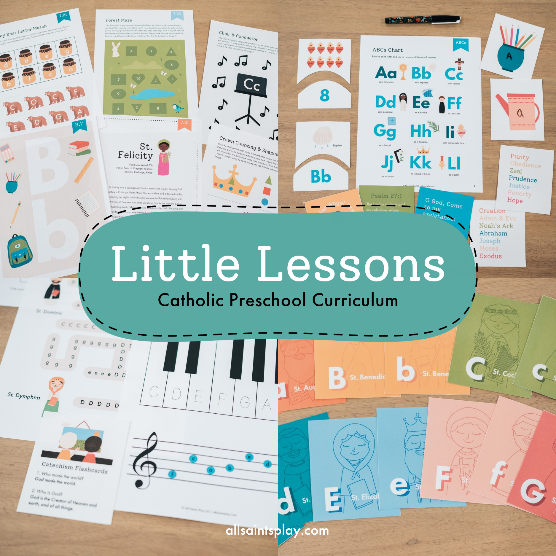 "All Saints Play has made homeschooling my 4 year old so fun! He wakes up excited to see what we’re up to, which saint we will learn about, and how he’ll get to use his creativity for school! My older children went to a Catholic preschool but none of my other children will, All Saints Play has made it so easy and fun!"