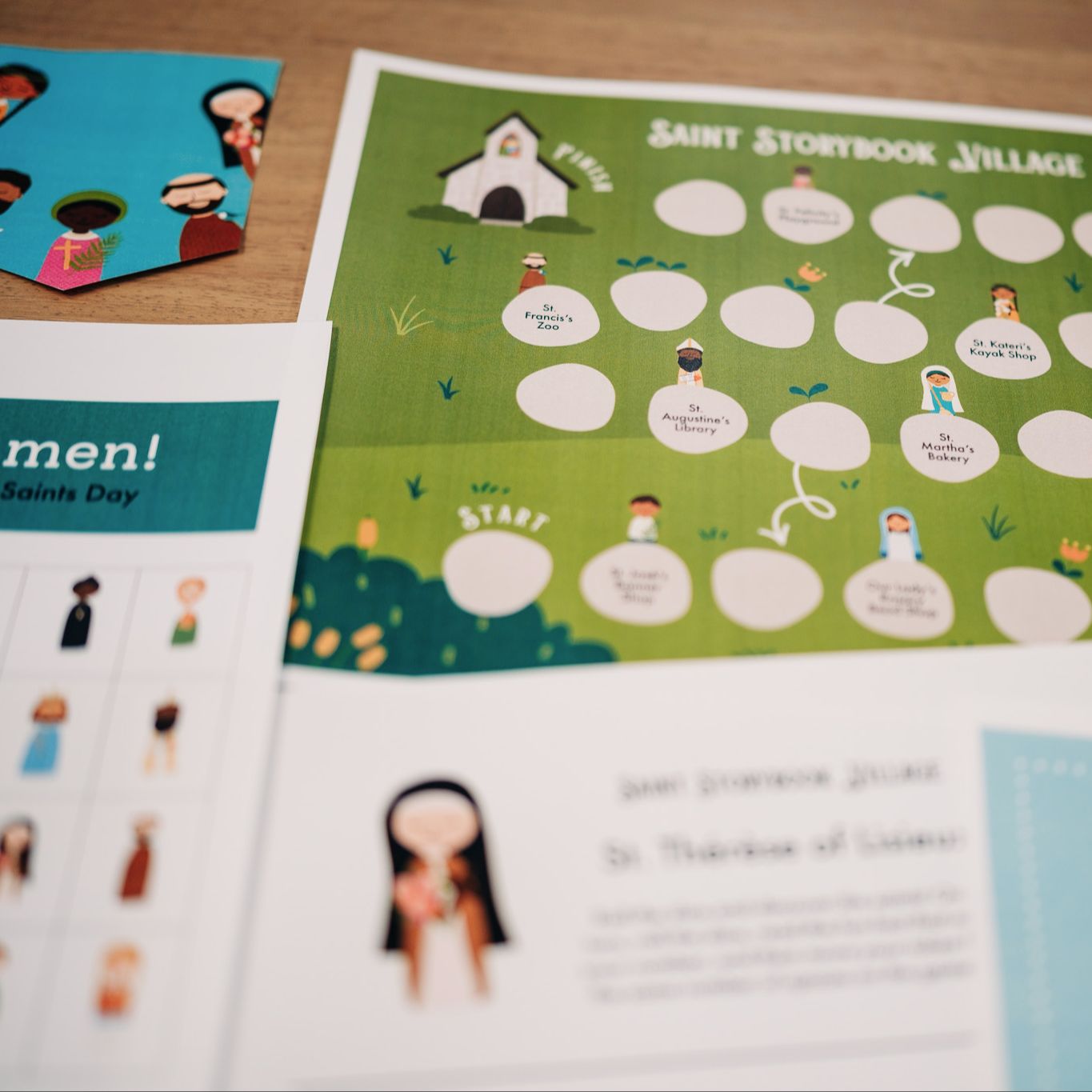 - Saint Storybook Village board game — roll and learn about the saints