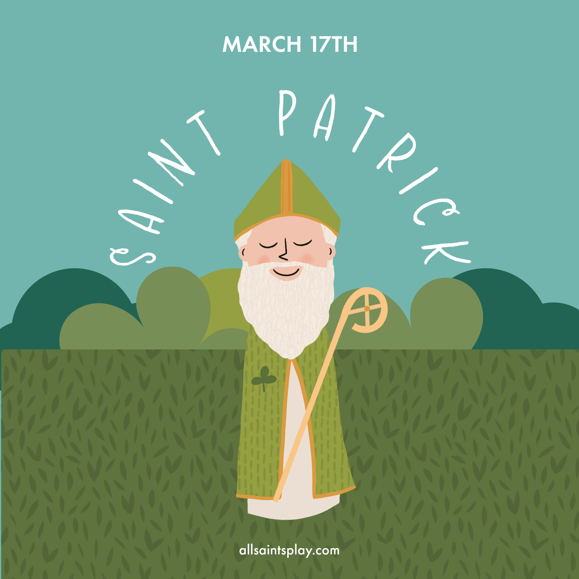 About the Saint: St. Patrick is the patron saint of Ireland, known for bringing Christianity to the Irish people in the 5th century. His feast day is celebrated with parades, prayers, and Irish traditions.