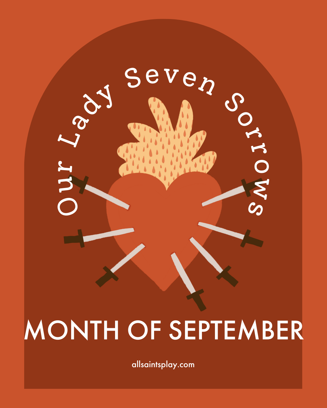 The Church dedicates September to Our Lady of Sorrows, inviting us to reflect on Mary’s seven sorrows and unite our hearts with hers in compassion and prayer.