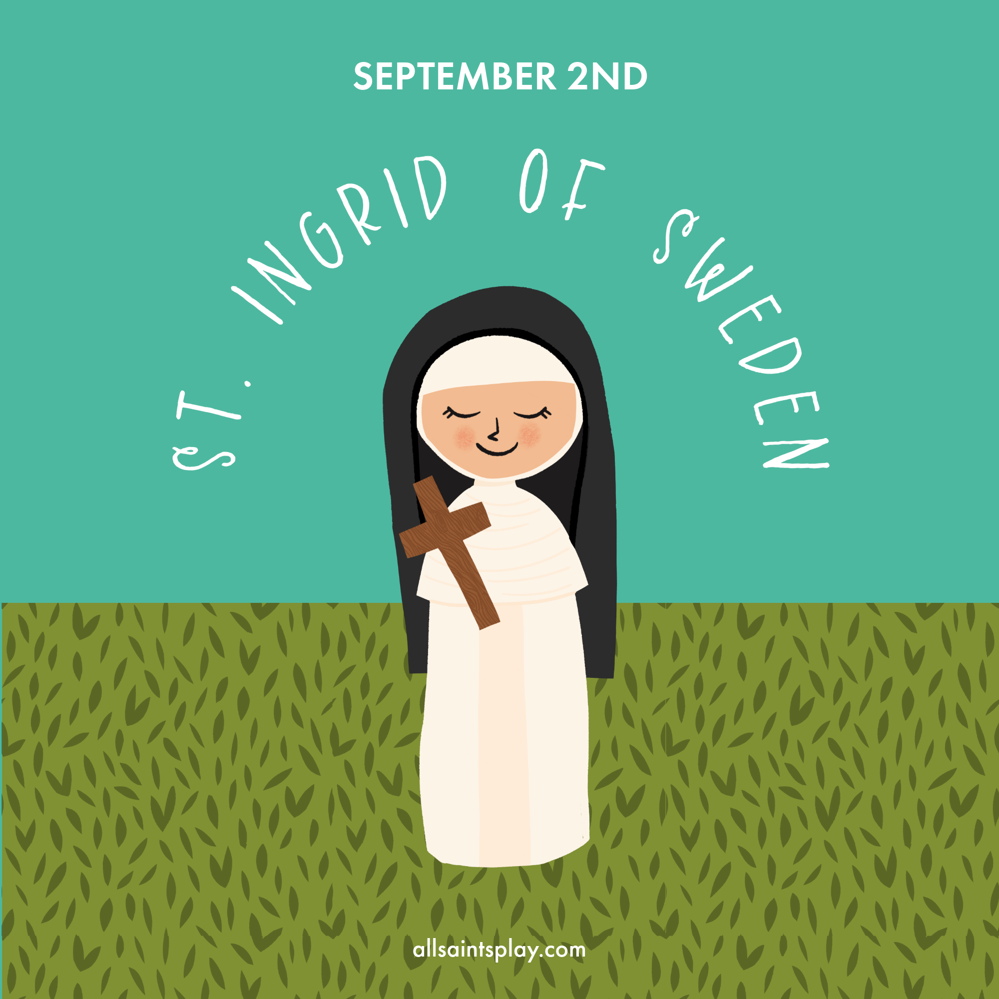 St. Ingrid was born to a noble family in Sweden in the 13th century. After her husband died, she decided to become a nun. She founded the first Dominican convent in Sweden and helped many people learn about Jesus. St. Ingrid was known for her kindness and devotion to God.