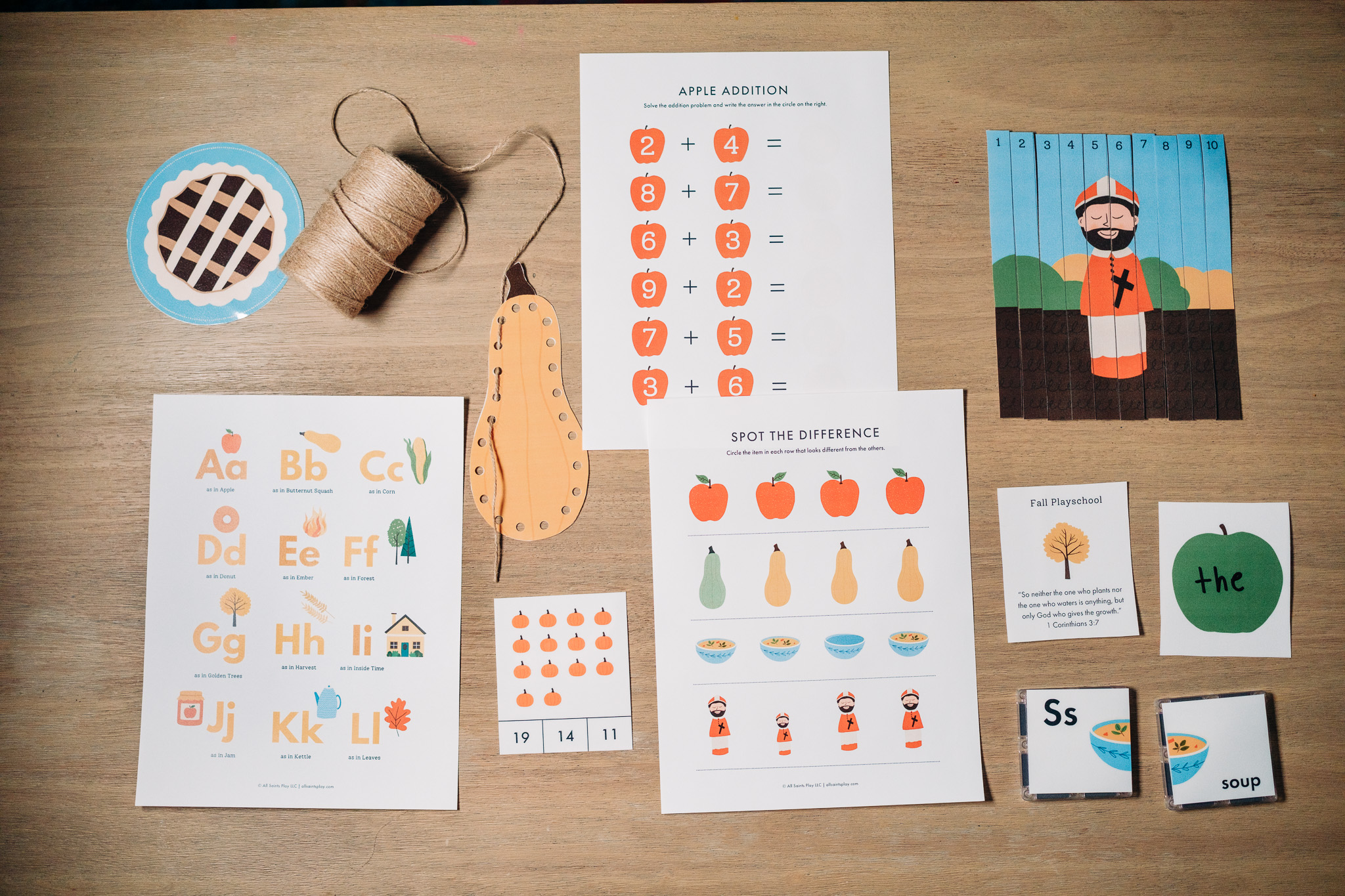 Make Fall Learning Cozy & Catholic with the Fall Market Playschool Kit (+ 7 Ways to Use It)