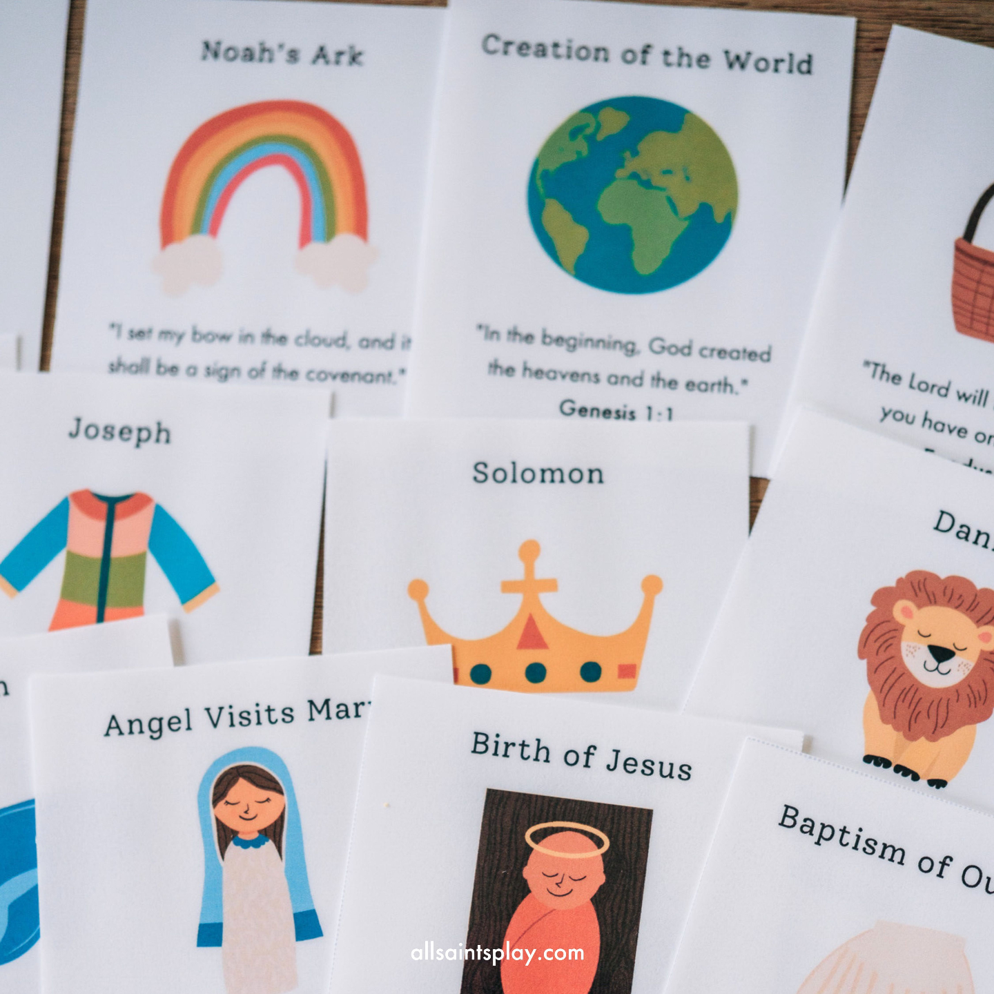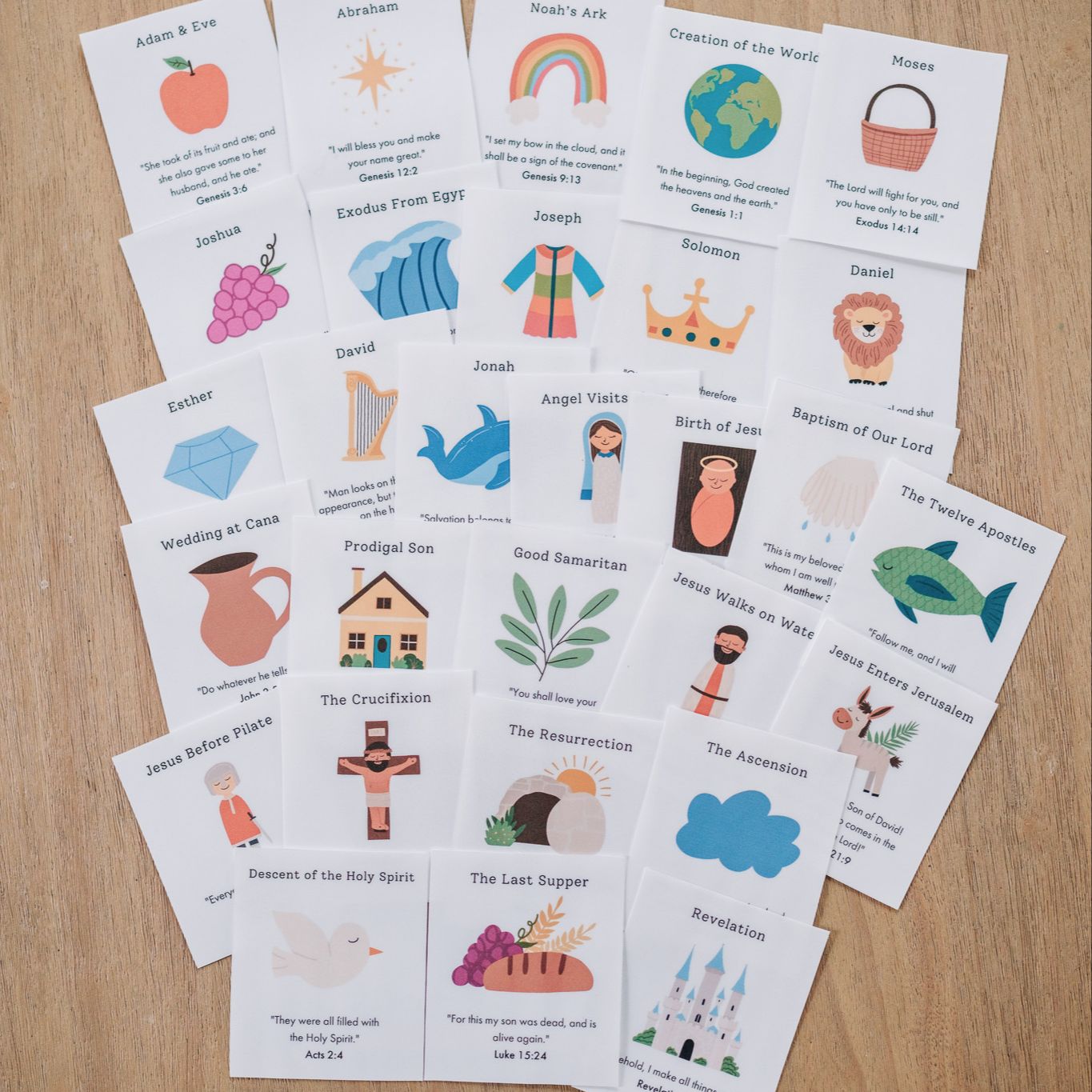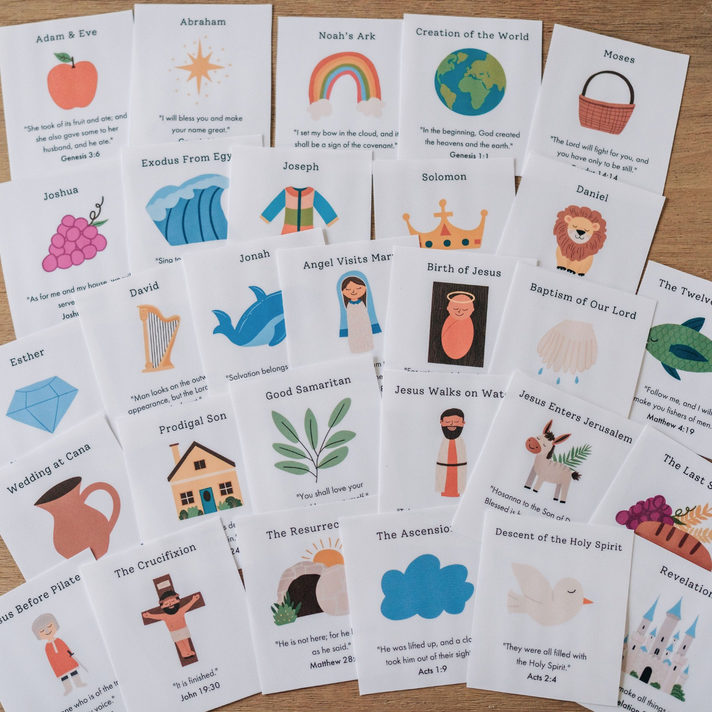 29 Full-Color Bible Memory Cards: A curated journey through Salvation History, from Creation to Revelation.