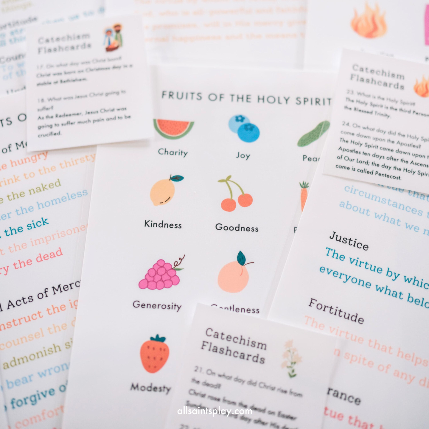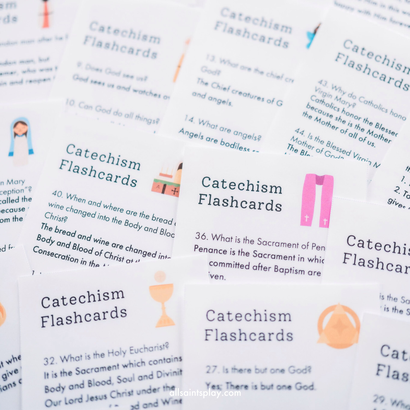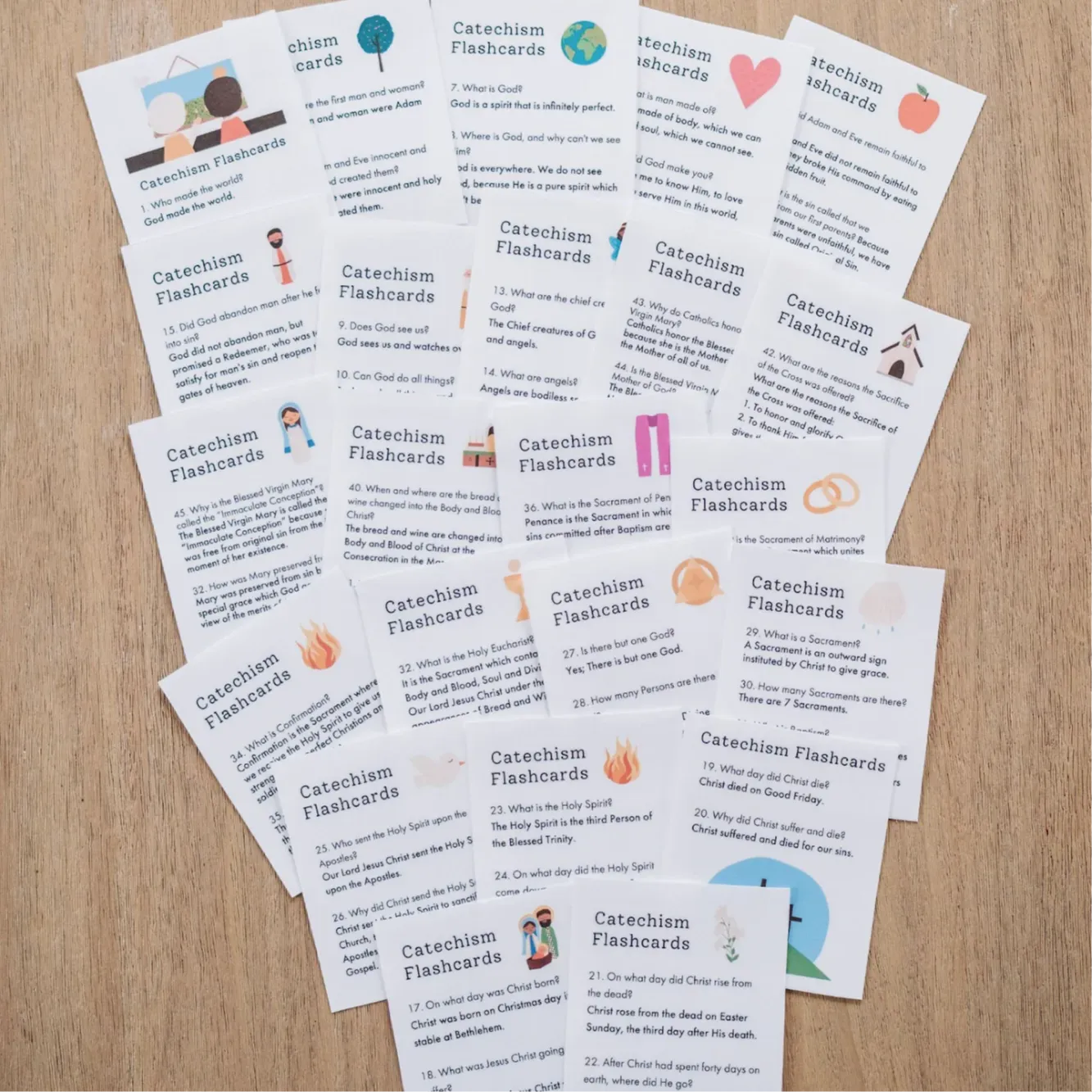 Support your child’s foundational faith formation with these Catechism Flashcards and Charts! This open-and-go printable set uses clear Baltimore Catechism Q&A and joyful charts to help young learners grow in understanding of the Catholic faith.