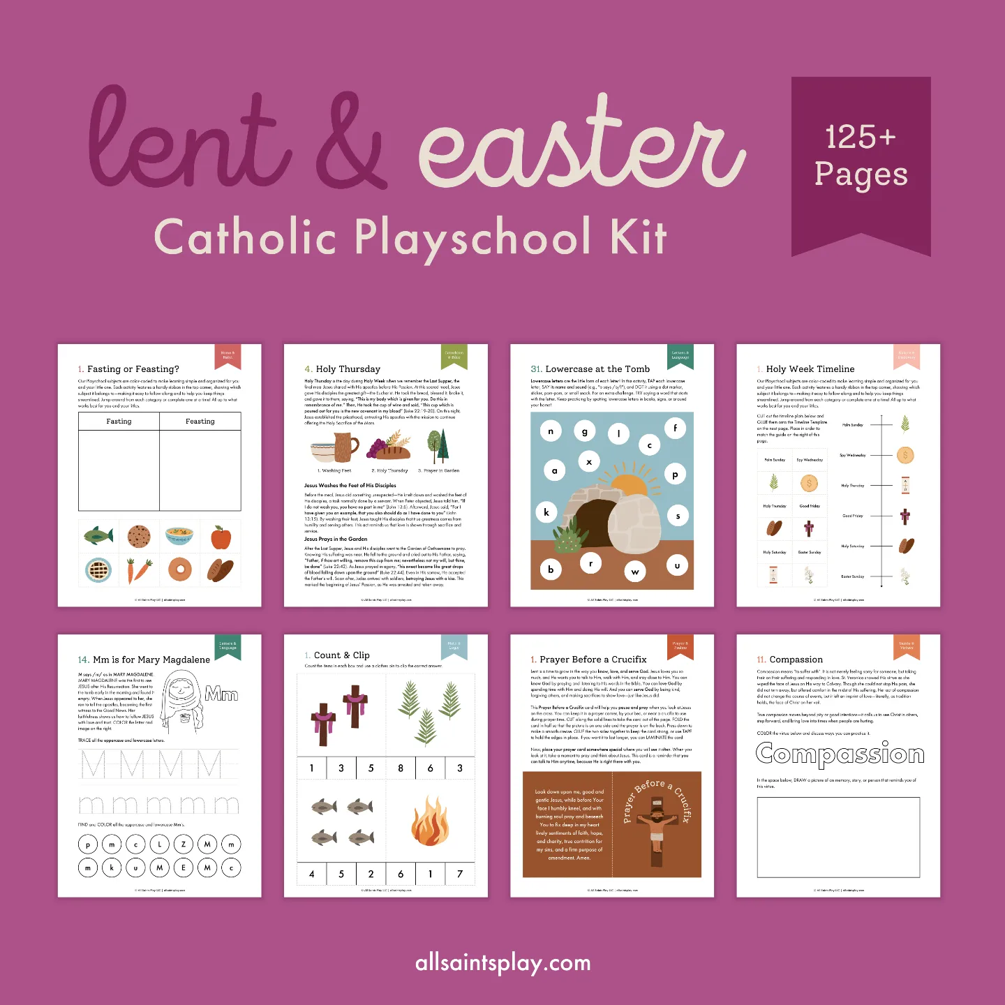 - Prayer & Psalms – Child-friendly Lenten prayers, Psalm tracing, and an interactive Lenten Prayer Chain to prepare little hearts for Easter.