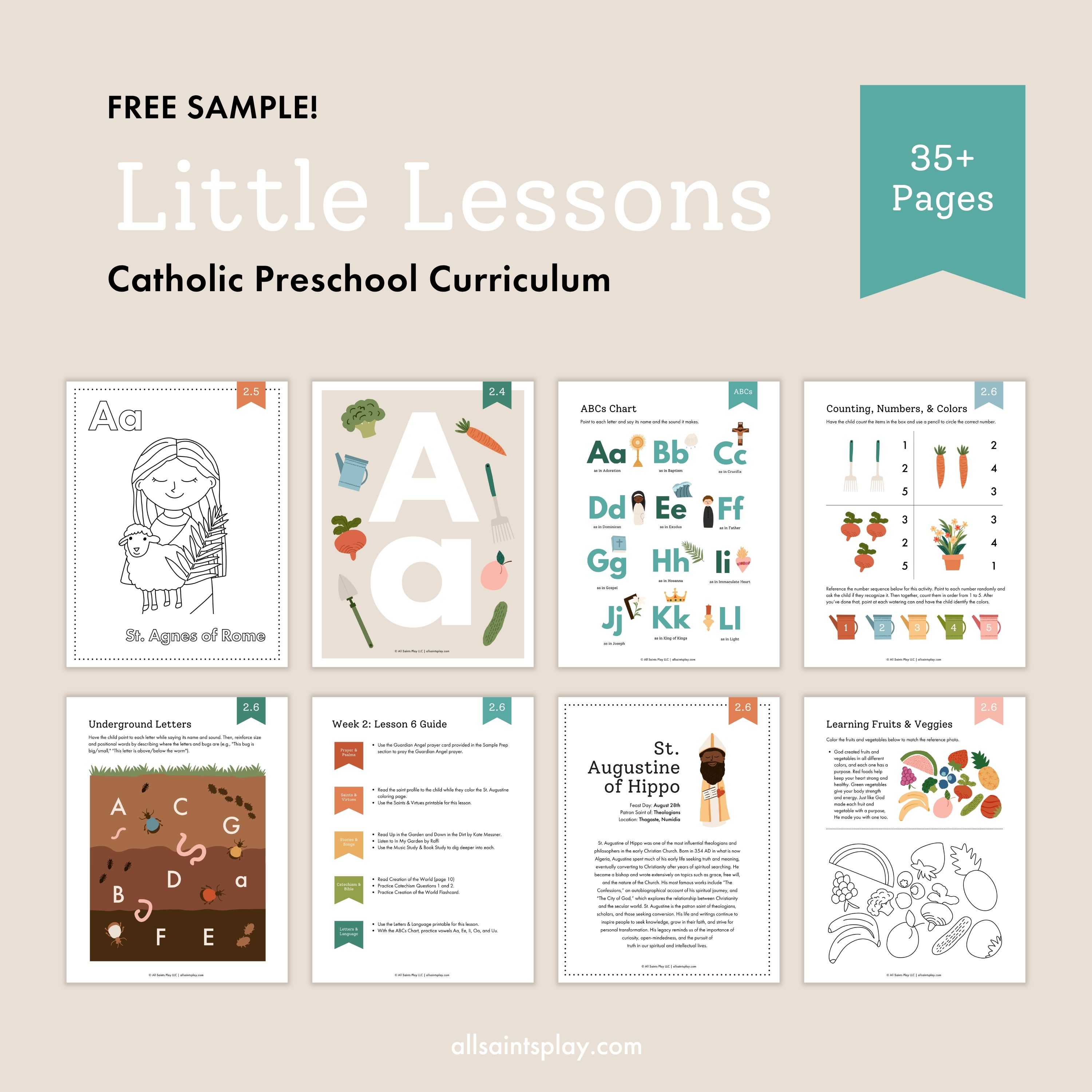 Try a free week of Little Lessons! This Catholic Preschool Curriculum sample includes saint stories, letter activities, and hands-on faith-filled fun. It’s open-and-go, low prep, and designed to help you teach preschool or pre-K with confidence, joy, and peace at home.