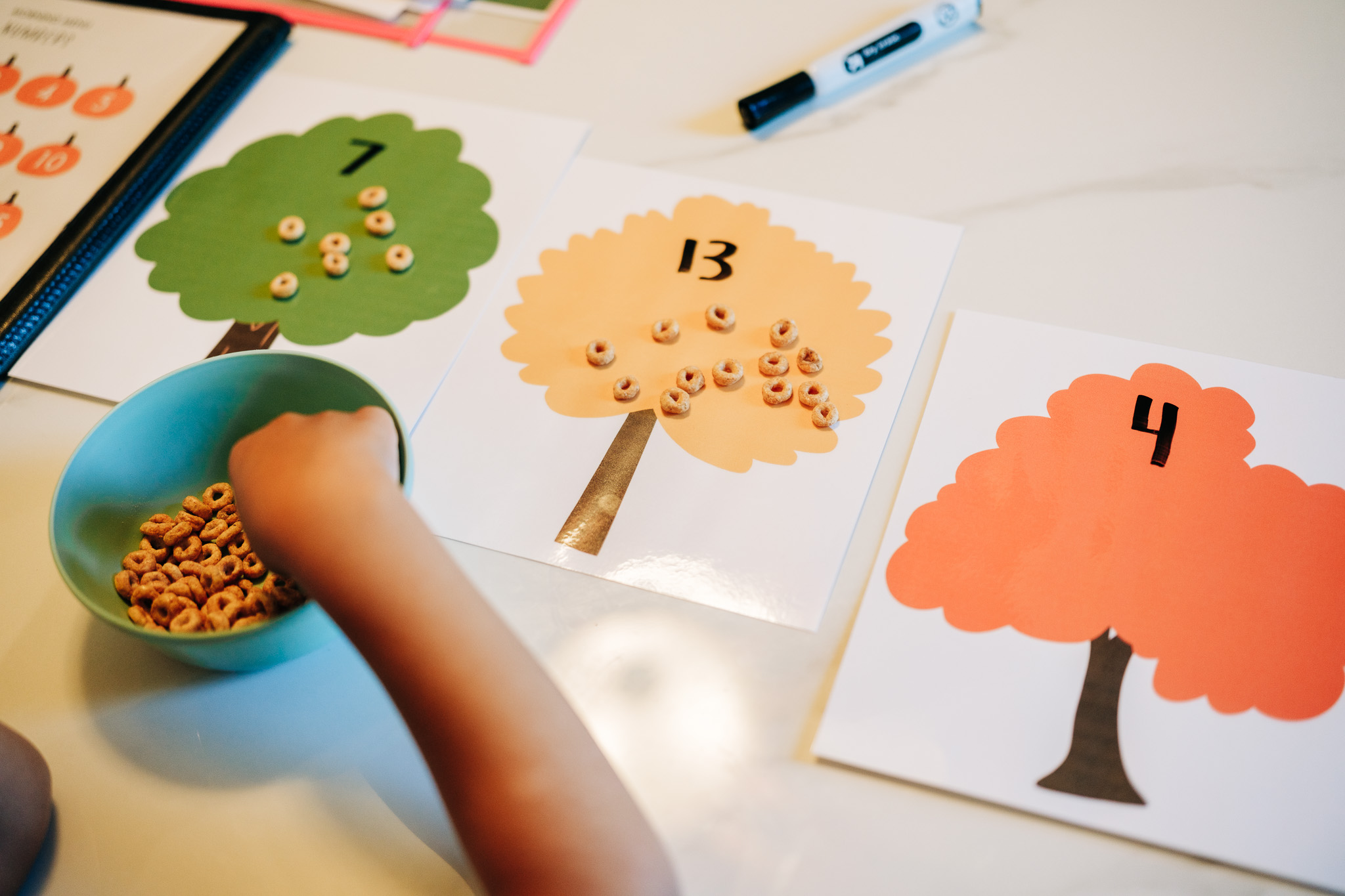 • Math activities: count & clip, apple addition & subtraction, ten frames, puzzle strips, and apple size sort