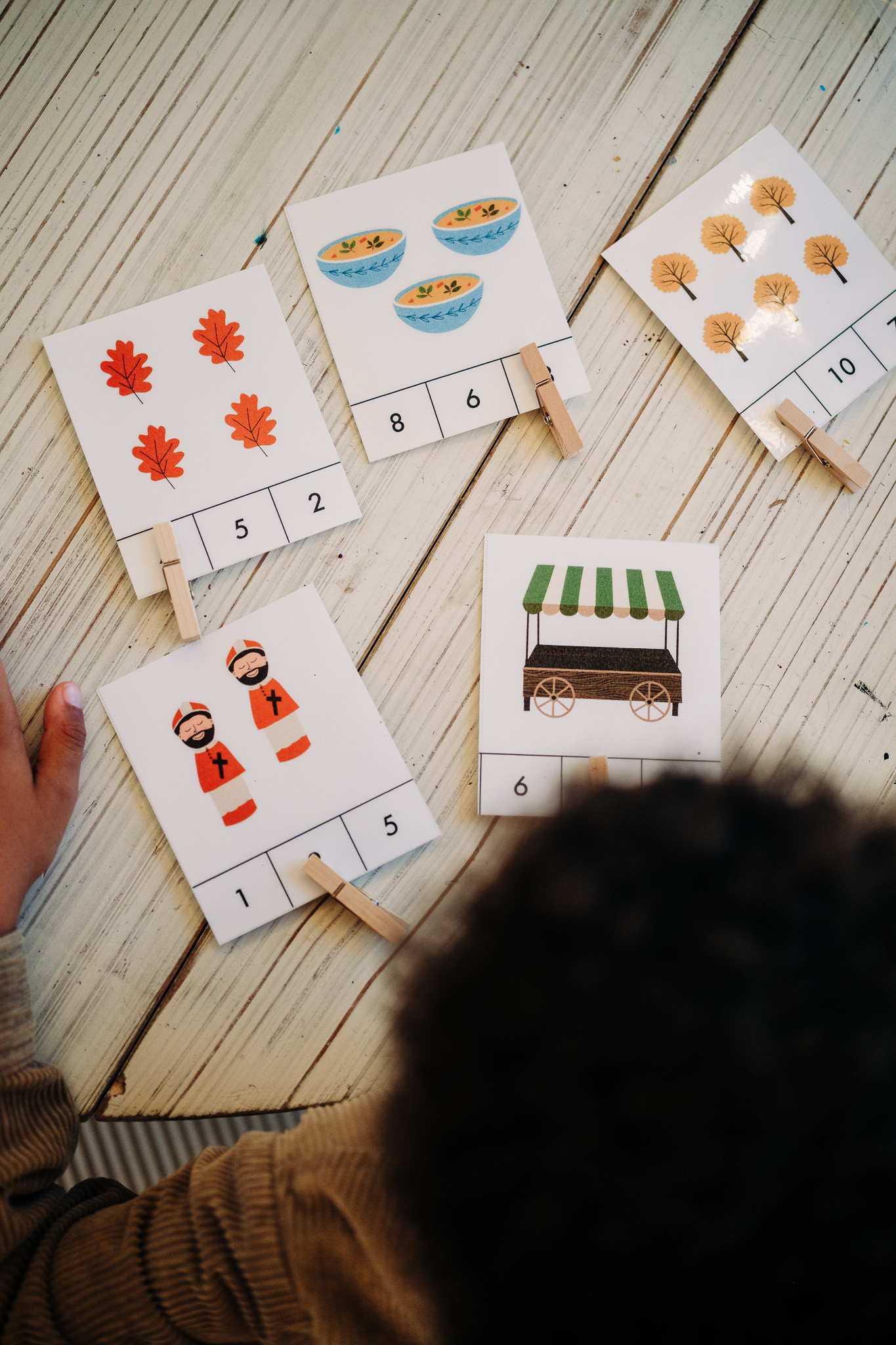 • Dramatic play printables: St. Charles’s Fall Market stand, order forms, play money, price tags, banners, and role-play props